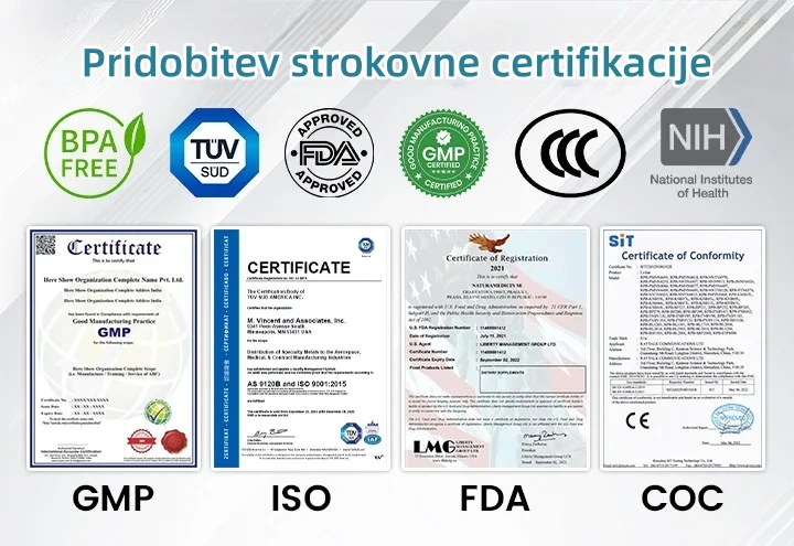 Več certifikatov: FDA, CE, ISO 13485, GMP