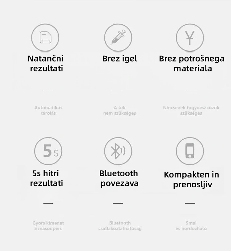 ✅ Resnično neinvazivno merjenje: brez vboda, brez krvavitve - idealno za starejše, novopečene matere, otroke in osebe z občutljivo kožo
